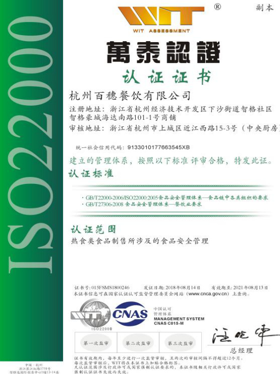 杭州百穗餐飲有限公司已具有10年以上食堂經營的資質;在餐飲管理方面、公司不斷挖掘自身優勢,利用生產、配送、經營一條龍的優勢,全程掌控食材安全及成本。